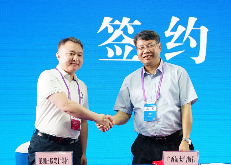 集團公司黨委書(shū)記、董事長(cháng)張藝兵與深圳出版發(fā)行集團黨委委員、總會(huì )計師高勇(左)簽訂戰略合作協(xié)議(陳子鋒 攝)
